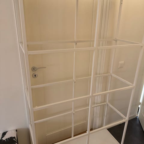 Som det syns i bilden är glaset till första hyllan genomskinligt, resten av glaset är frosstat glas.