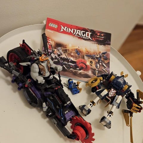 Säljer en LEGO Atlantis Manta Warrior från set 8073. Inkluderar minifiguren, trident och en liten bit av en undervattensscen. Instruktionsbok medföljer.