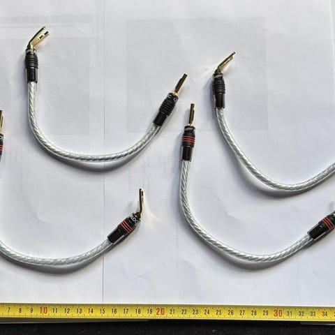 Högtalarjumpers som fungerar fint. Handgjorda ”custom made”. Skickar även med 4 st Nakamichi spadkontakter om du behöver byta banankontakter för montering.
