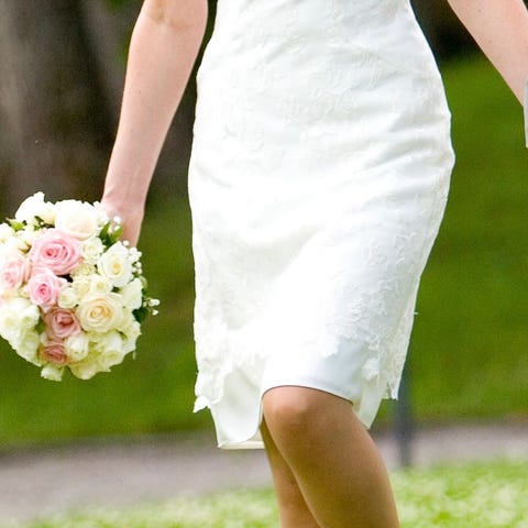 Underbar Bröllopsklänning i fint skick, kemtvättad, med spets och lite släp. Endast använd ett par timmar.