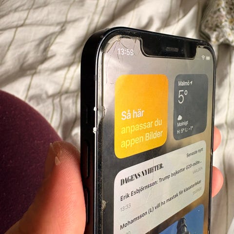 Säljer min iPhone 12 64GB Vit. Den är i bra skick och har använts med skärmskydd, skal och kamera linsskydd. Det är skärmskyddet som är lite sprucket på bilden. Batterihälsan är på 78% och ingenting är utbytt på den. Säljs i befintligt skick.