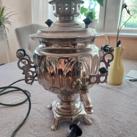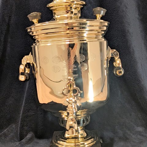 Antique Persian Gold Played Samovar Set Tea Pot ST. Trays. Pitcher
