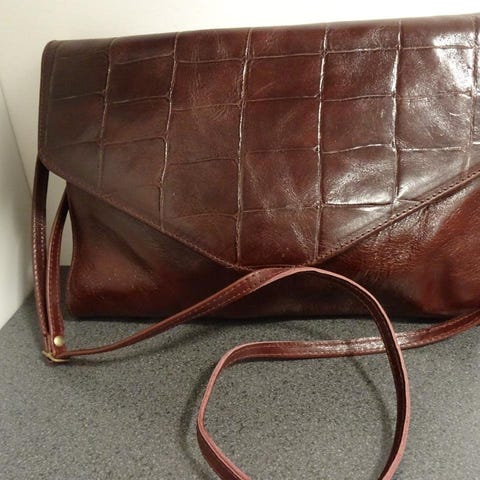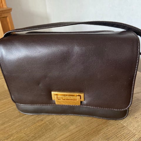 En snygg brun axelväska i läder , med 4 olika fack där 2 är med blixtlås. Höjd 18.0 cm och bredd 14,5 cm, väskan är använd endast ett fåtal gånger och ser helt faktiskt oanvänd ut, axelväskan är i mycket fint och oskadat skick.