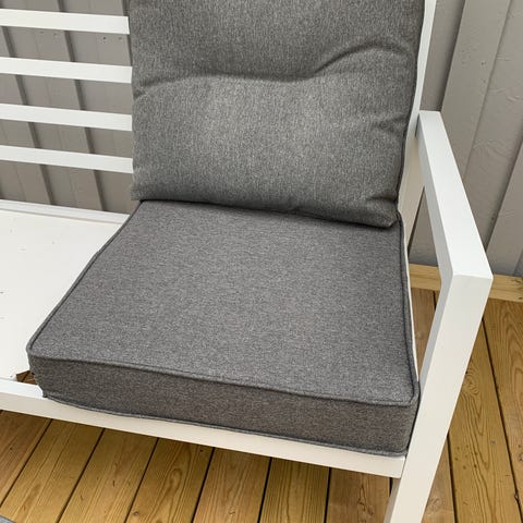 Knappt använd. Måtten står på bilden. Soffan har samma mått men är 3 sittsig. Så ca 1.20 bred.