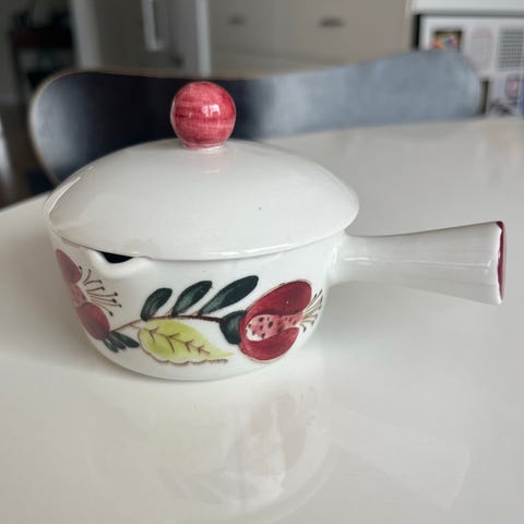 Fin liten smörsnipa med lock säljes. Kronform Rörstrand, design Gunnar Nylund. Höjd med lock 6,5 cm. Pris 150 kr.
