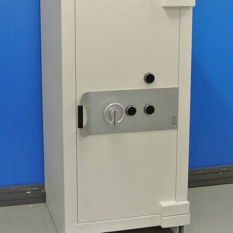 Skåpet är byggt i kraftig stål med laserskurna kanter utan svagheter, vilket ger hög motståndskraft mot inbrottsförsök. Dörrpanelen är 3 mm tjock och säkras med tre kraftiga låsbultar.