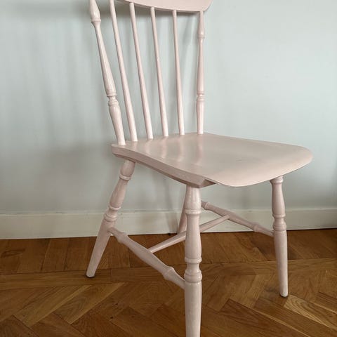 en dansk pinnstol med betongsits, mycket tung, totalhöjd 78 till sits ca 45, hämtas i Bromma Ulvsunda