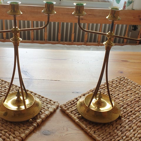 Svart ljusstake med 4 tunna ljus och äpplen 150 kr