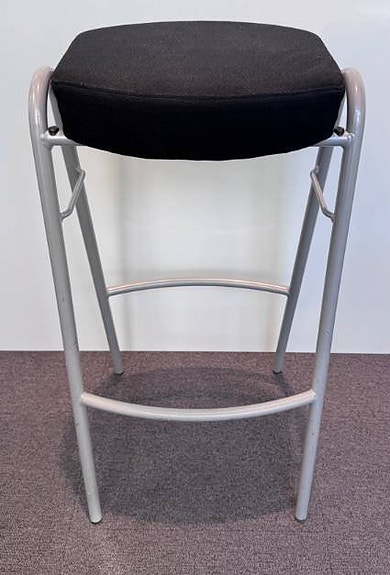 Skick = bra. Tyget kan ha någon fläck och ben stativet behöver tvättas/ev. slipas. Fotot är på en av stolarna men alla är i liknande skick.