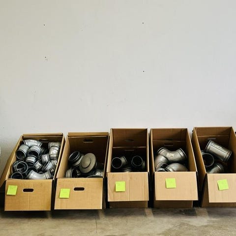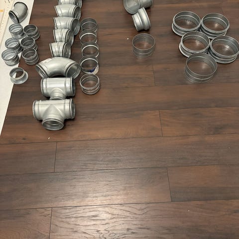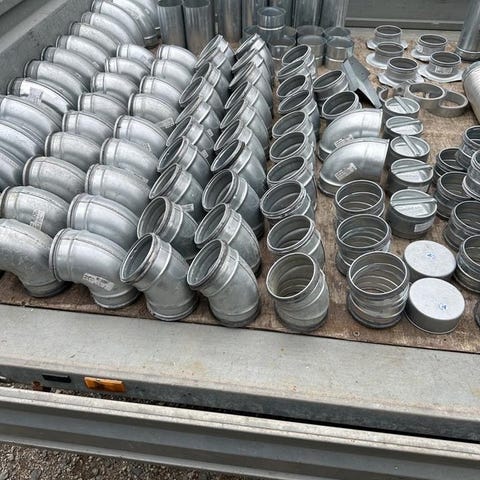 Ventilationsdelar 125 mm 3 st T-rör 125-125 4 st T-rör 125-110 7 st Påstick 125-125 11 st böjar 30 grad 18 st böj 15 grad 27 st böj 45 grad 13 st böj lång 90 grad 14 st böj kort 45 grad 2 st böj nippel/muff 90 grad 7 st övergång 125-100 nippel/nippel 10 st övergång 125-100 muff/nippel 18 st nippel 10 st nippel lång/skjutbar 1 st nippel/muff/skjutbar 15 st muff 3 st muff lång/skjutbar 8 st lock rens brandsäkra 5 st lock rens 7 st svep 127 mm 8 st kanalstöd 2st flexrör 3 st frånluftsdon inkl ram 3 st ventilationsgaller fasad 3 st rullar patentband Ventskruv 4 st IRIS ställdon 2 st fläktslang inkl klammer 2 st ljuddämpare veloduct 1 st ljuddämpare Swegon Spirorör 30 m Samlingslåda brandklassad inkl 6 st anslutningar.