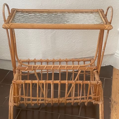 Två fina piedestaler i rotting/bambu. Bruksslitage.