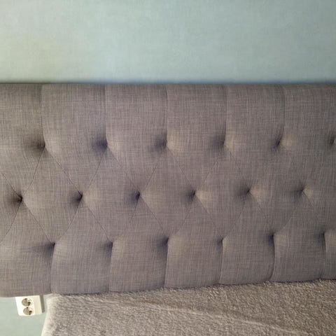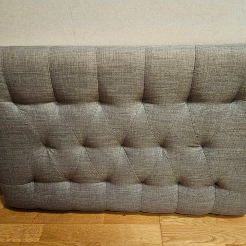 Grå sänggavel 180cm bred, 126cm höjd. Lite riv märke , där av billigt pris så prutat och klart 😊