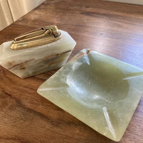 Askopp och tändare fodral från Libanon. Marinblå och gulddetaljer
