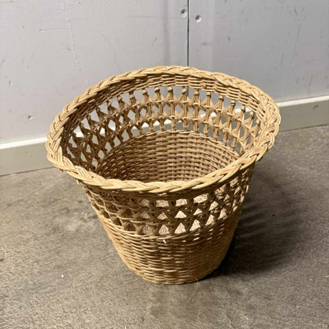 Italiensk röd / mörkröd vintage papperskorg i falskläder. Har några ytliga skavanker, men är stadig.