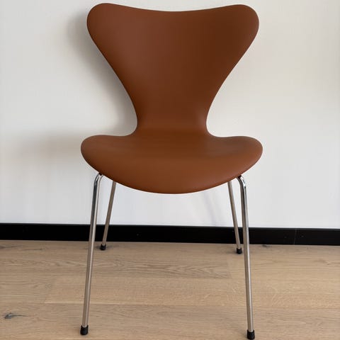 Sjuan 3107 stol färgad askfanér stålstativ krom.