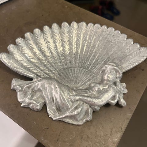Fin liten ask i tenn märkt Danskt kunst tin. Passande fat märkt Lysekil 1931 medföljer. Pris 450 kr.