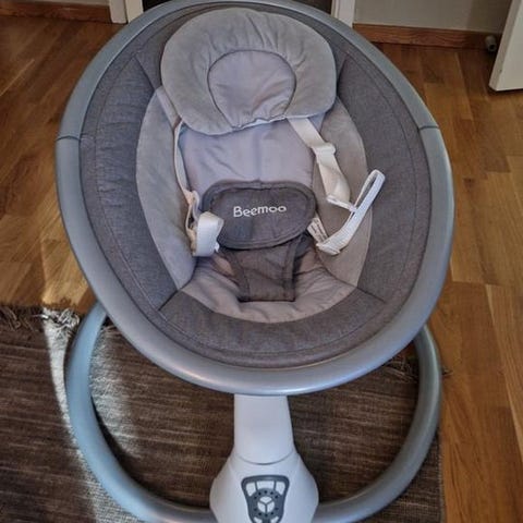 Baby "gungstol" säljes. Använd sparsamt. Inga skador. Fjärrkontroll-olika gunghastighet och melodier. Färg: Grå