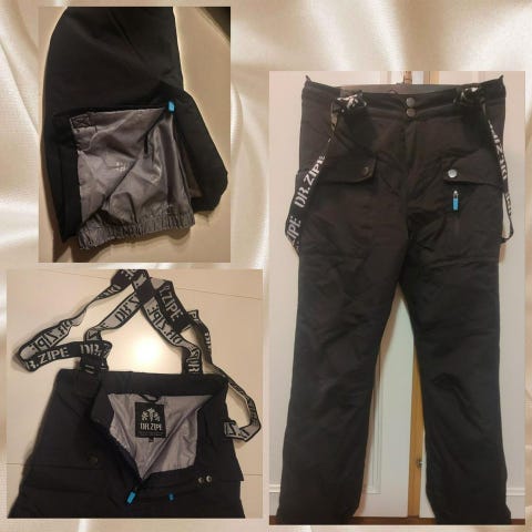 Blå skidbyxor med hängslen.