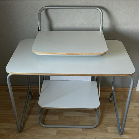 Praktiskt rullbord med utfällbar skiva, härlig grönlackerad stomme