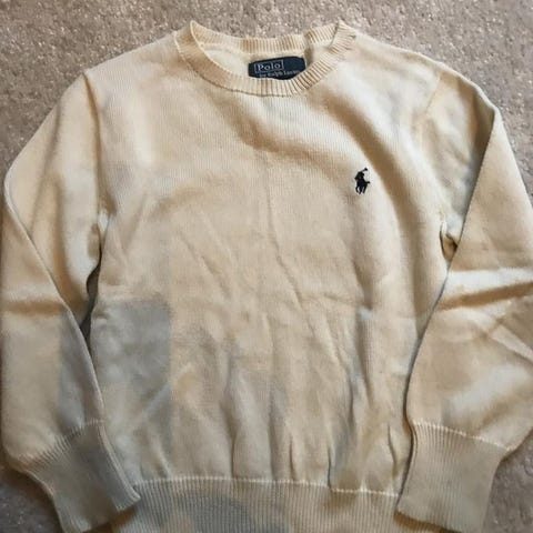 Röd-blå randig långärmad bomullströja från Ralph Lauren. Stl 14-16 men ganska liten i storleken.