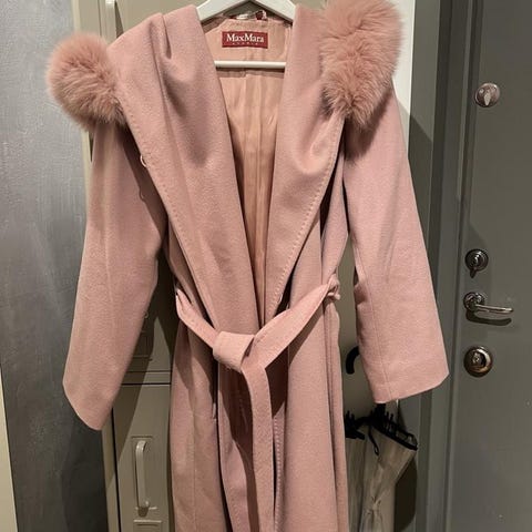 Säljer min Max Mara Mango kappa i färgen beige fin päls. Storlek IT 40 som motsvarar europeisk storlek 36. Varsamt använd i helt okej skick behöver sys vid hängögglan vilket enkelt kan göras hos en skräddare, inga sminkfläckar kommer från djur och rökfritt hem Pälsen är även avtagbar. Jackan är i 100% Ull.