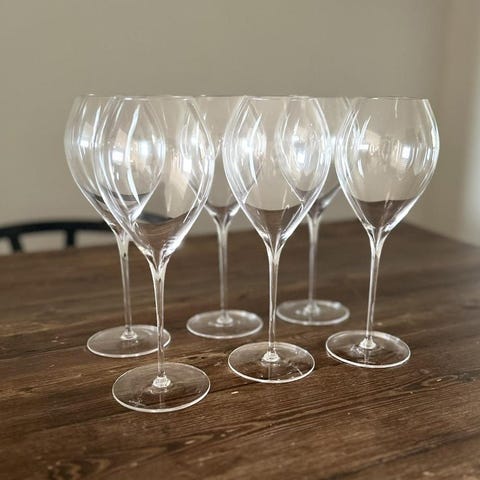 Fint onaggat skick i överkant. Ett av rödvinsglasen har en liten flis ur i under foten (se bild 5).