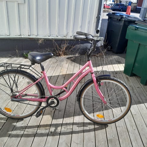 Cykeln är i gott skick och fungerar utmärkt, dock har några skönhetsfel uppkommit med åren som bilderna visar. Nyckeln saknas tyvärr, går kanske att beställa ny? Cykelkorg medföljer för den som vill.