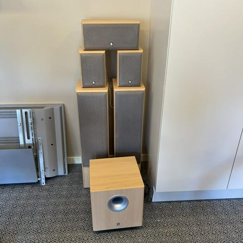 1 par Audio Pro Blue Diamond (Front) 1 par Audio Pro Black Pearl (Surround) 1 st Black Vector (Center) Ett komplett surroundhögtalarsystem med 5 högtalare i svart pianolack. Fronthögtalarna har aktiva subwoofers med kraftigt basljud. Ena högtalarens blå diod lyser inte men detta påverkar inte högtalaren. Finns en del mindre repor som uppkommit genom åren. Högtalarna fungerar annars fint.