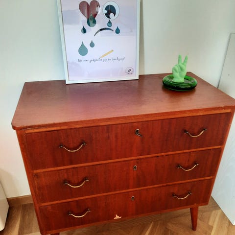 Säljer vår fina teak byrå från Nybrofabriken. Tillverkad ca 1950-1960 skulle jag tro. Möbeln är i fint skick men har några märken. Med teakolja o lite puts kan den bli ännu finare.