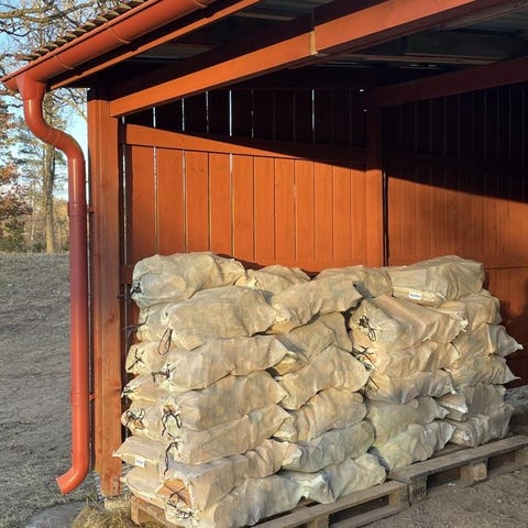 Torr och fin blandved säljes i 1m3 alt 1.5m3 säckar. Kapade i ca 30cm längder. Kluven våren 2024