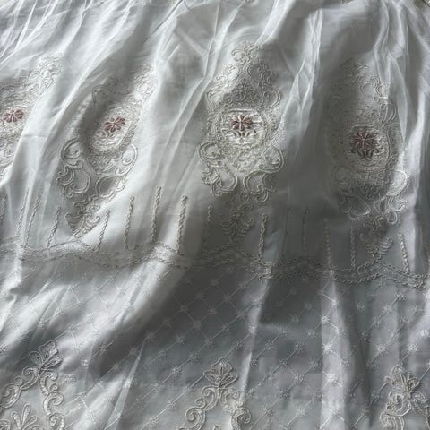 Säljes Fina Vita Gardin Längder med vackert mönster mått ca 150*220/längd 180kr/paret