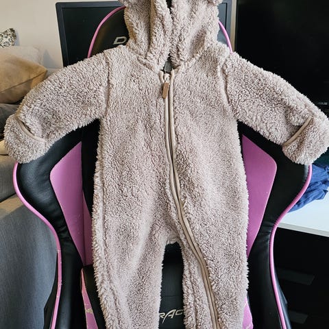 Varm och mjuk grå overall med rävar. Newbie stl 68 men stor i storleken. Eftersom den är så mjuk har den varit perfekt att ha i vagnpåsen. Vi har använt den til två barn, men den är fortfarande i mycket gott skick. Kommer från djur- och rökfritt hem.