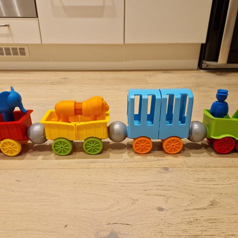 Alla ombord på Roll & Surprise Animal Train! Åk med de söta djurvännerna på ett äventyr med massor av lärande spänning! Din baby kommer att njuta av titut-lek medan du utvecklar finmotorik genom att vrida, dra och trycka på mekaniska funktioner på tågens hjul. Pop-up djur introducerar djurnamn, djurljud och färger. Denna pedagogiska leksak belönar också nyfikenhet med undervisning av orsak och verkan. Den upplysta skorstenen främjar visuell medvetenhet när den blinkar till 55 låtar, melodier, ljud och fraser. Småbarn kan också bygga upp grovmotoriska färdigheter genom att skjuta tåget eller använda sladden för att dra det bakom dem. Batterier inngår (2xAAA) https://www.spelexperten.com/leksaker/barn-babyleksaker/vtech-baby-aktivitetstag.html?gad_source=1&gclid=Cj0KCQiA_NC9BhCkARIsABSnSTaaTSkR7LYRP3fdR4S8z-lSu4XJgPqWxdSkStHDFmMX8ibz5d2JV8AaAjObEALw_wcB