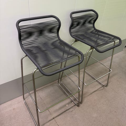 Två barstolar från Hay i modellen Hee, storlek high. Knappt använda och i mycket fint skick. Litet märke på ena från flytt, se bild. Mått enligt bilder. Även för utomhusbruk. Säljes på grund av flytt. Nypris 5670 kr för båda (2835 kr/st).