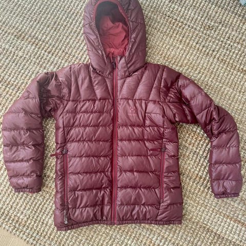 Varm och skön dunjacka i ljusrosa från Adidas. Två sidofickor framtill och luva. Sparsamt använd i fint skick, dock något mörkare rosa över bröstet efter användning.