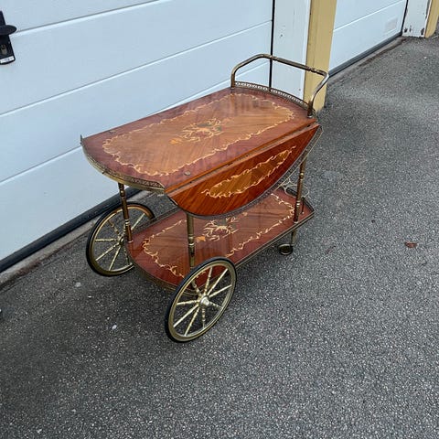Ett charmigt inredningstillbehör, perfekt som tevagn eller som en mobil bar, idealiskt för eleganta, vintage-inspirerade eller som en kontrast i moderna miljöer.