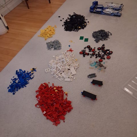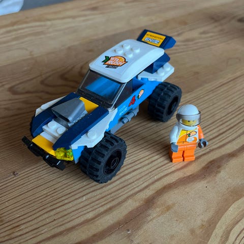 Säljer ett LEGO set 656 som innehåller en bil med en husvagn på släp. Perfekt för LEGO-entusiaster och samlare!