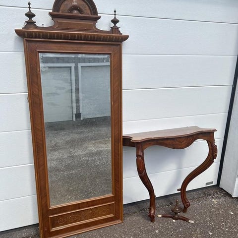 Antikt halvmånebord/sidobord från sekelskiftet. Fint patina. Passar som avlastningsbord, under en spegel i hallen eller till och med som ett litet köksbord i ett litet kök. Mått: Bredd 117,5 cm, höjd 74,5 cm och djup 57,5 cm.