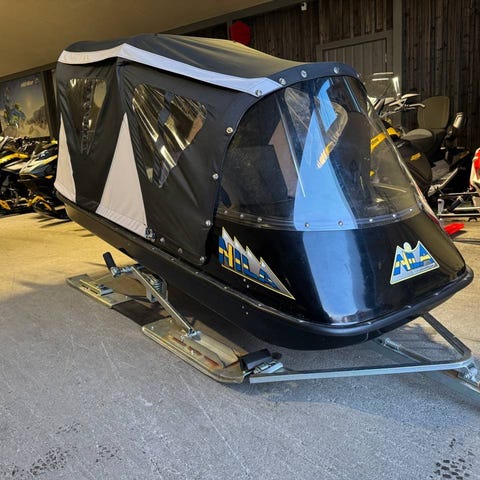 Framrutan är i okrossbar och köldtålig plast. Pulkan har en hylla fram för småprylar och det sitter en stötupptagande sarg runtom hela pulkan.