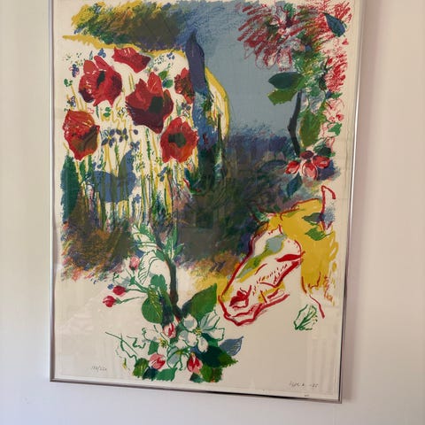 En abstrakt färgsprakande tavla oljeprintad på canvasduk