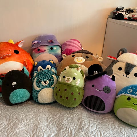Söta Squishmallows i bra skick. Den till höger har några småfläckar på baksidan men alla andra är i superfint skick. Bara stått på en hylla i barnrummet.