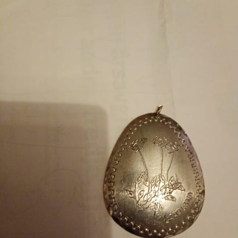 Fint hänge med mönster på framsidan och stämpel på baksidan av hänget med Tenn samt handmade J.L. Mycket fint skick.