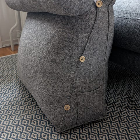 Ergonomisk kilkudde för bl a snarkning. 61×61×19 cm. Provats under några få nätter. Tvättbar kuddskydd. I fint skick! Köpt i augusti i år. Standard stl. Kommer från ett djur-och rökfritt hem. Nypris: 733 kr.