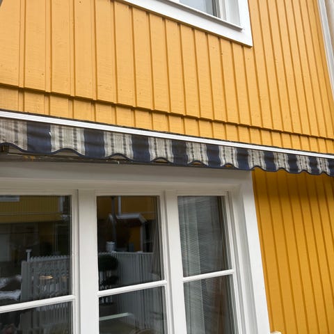 Finnes Vind- och solautomatik till markis med vilken markisen kan fällas in/ut automatiskt beroende på vind och sol.