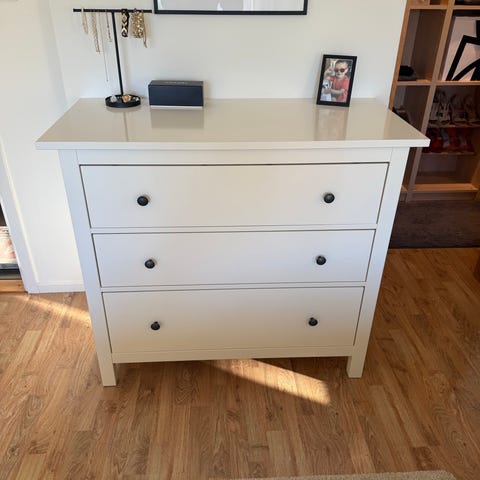 En byrå från Ikea, Hemnes, i gott skick och i vit färg, mått 108x96cm.