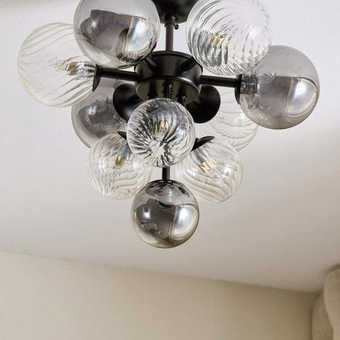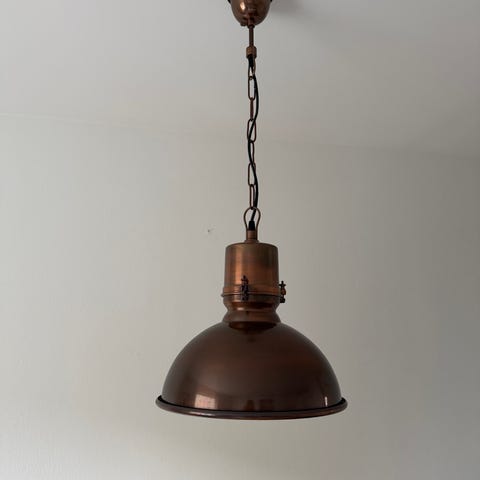 Taklampa i bronsfärgad metall med glaskupa