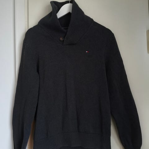 Svart och grå randig stickad v-ringad tröja från Tommy Hilfiger i strl M.
