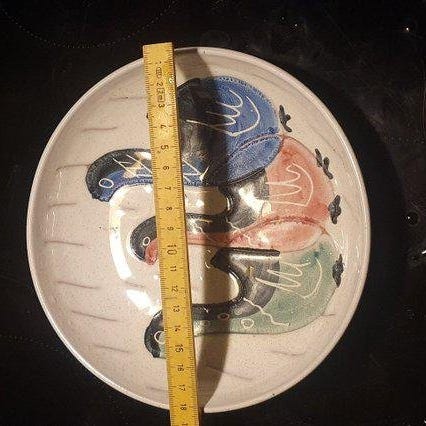 Ett speciellt och mycket fint litet fat från den kände italienske konstnären Giancarlo Montuschi. Denna är gjord enligt en mycket speciell tillverkningsmetod, kallad raku, vilken har sitt ursprung i Japan. Finns att läsa om både konstnären och tillverkningsmetoden på nätet, bara att googla. Fatet ligger i ett presentetui enligt bilder.