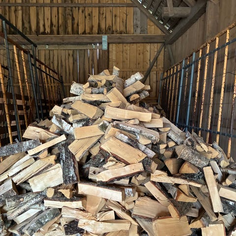 Vi har torr björkved i 30cm längder som är klyvd och förpackad i kubiksäckar