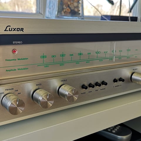 Vintagereciever. Nån lampa är ur funktion, volymen sprakar, men fungerar i övrigt. Skickas ej, hämtas i Hosjö.